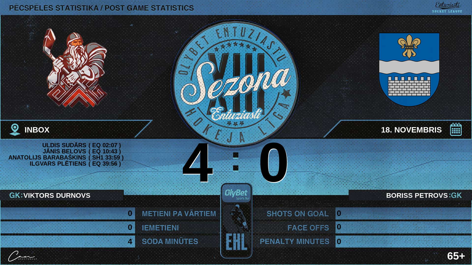 | 45:00 | DGV | GK Out | #1 Boriss Petrovs |