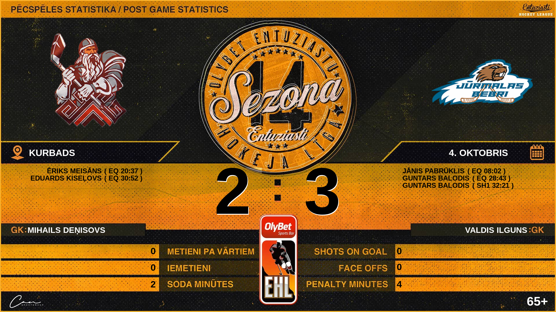 Aigars Veikšins (33) | LW | 0 | 0 | 0 | 0 |