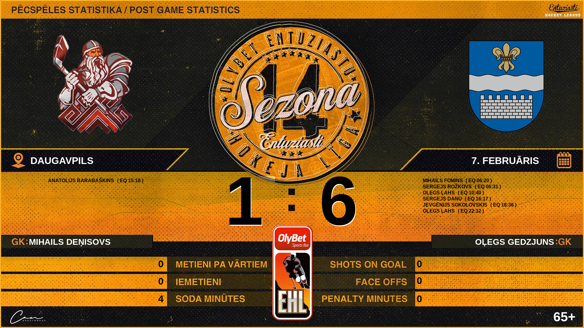| 00:00 | DGV | GK In | #31 Oļegs Gedzjuns |