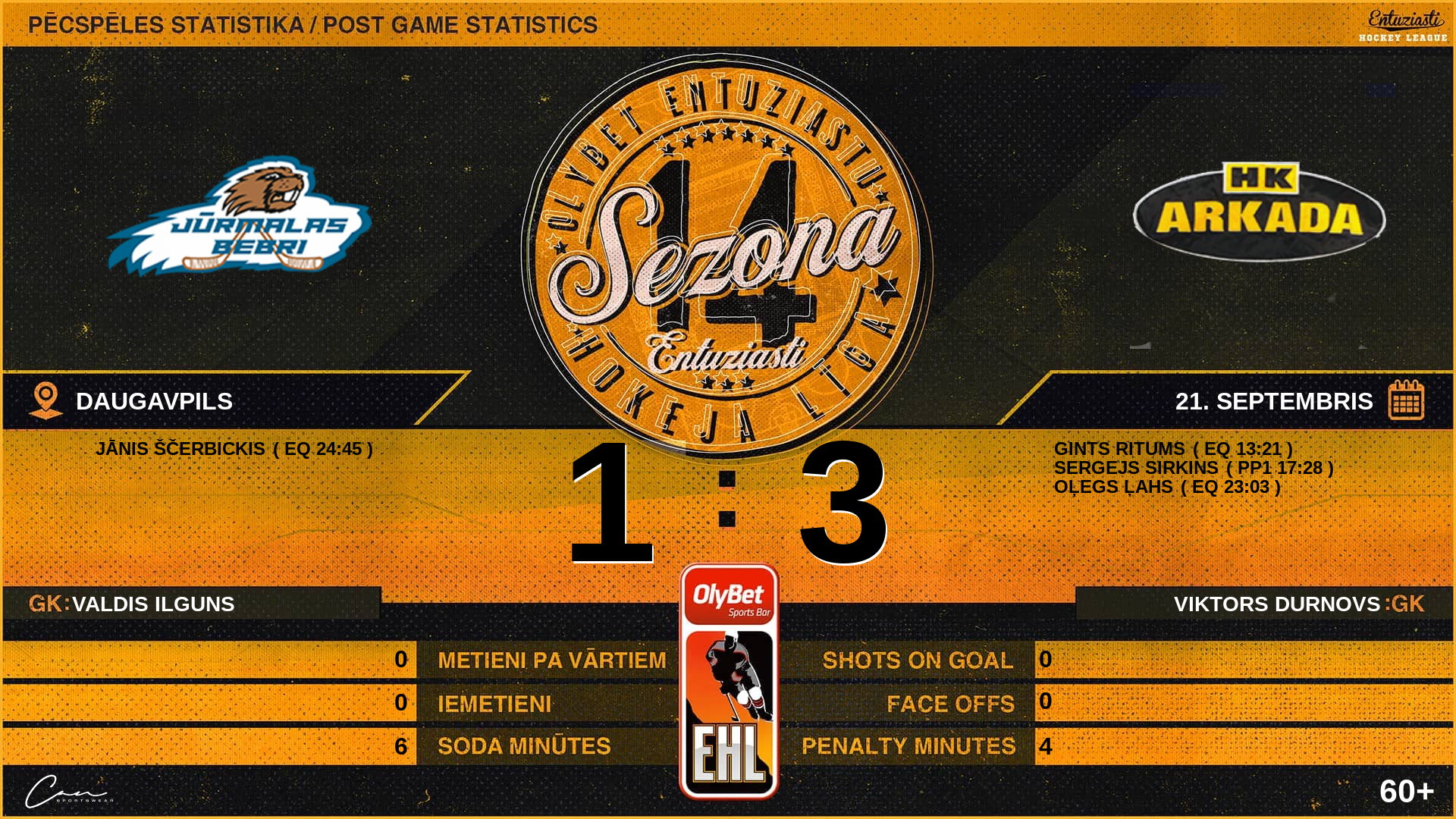 00:00 | ARK | GK In | #1 Viktors Durnovs |