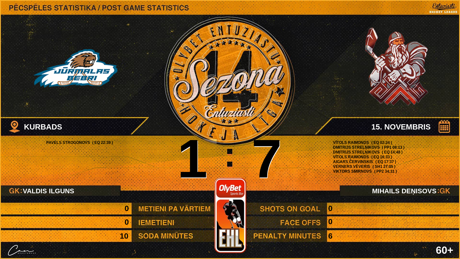 | Pavels Strogonovs (7) | F | 1 | 0 | 1 | 0 |