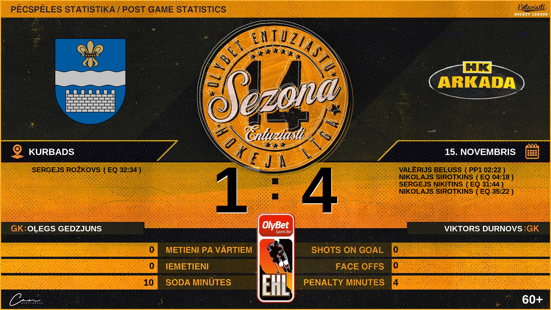 | 00:00 | ARK | GK In | #1 Viktors Durnovs |