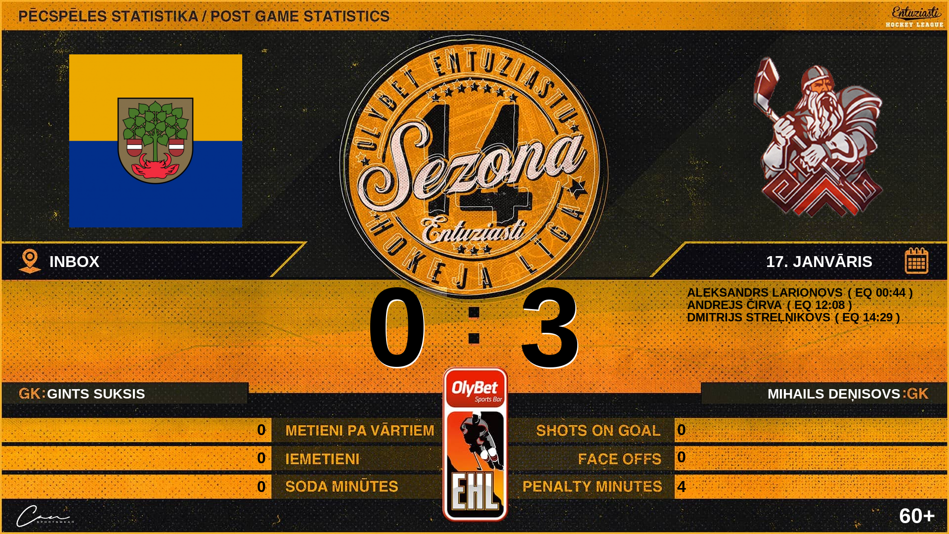 | 00:00 | WLM | GK In | #35 Gints Suksis |