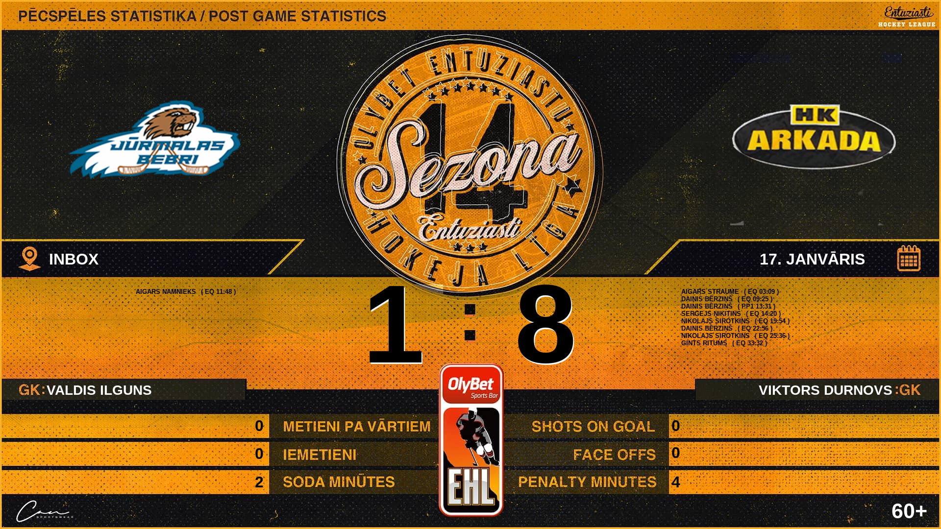 | 00:00 | ARK | GK In | #1 Viktors Durnovs |