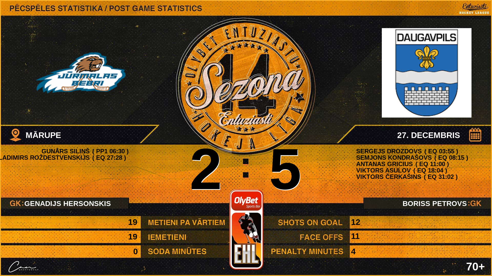 | 11:00 | DGL | Vārti (EQ) | #16 Antanas Gricius, piespēles: #13 Sergejs Drozdovs |